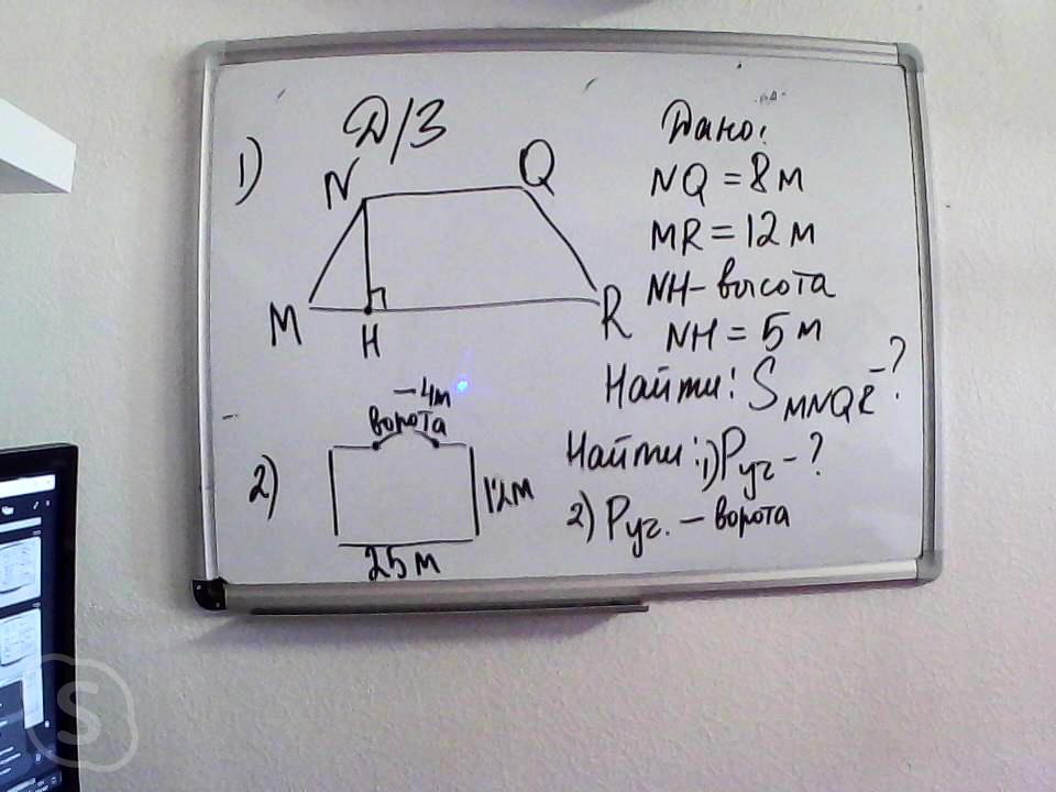 S mnqe = 1/2 × (8 + 12) × 5 = 0,5 × 20 × 5 = 50 м²
