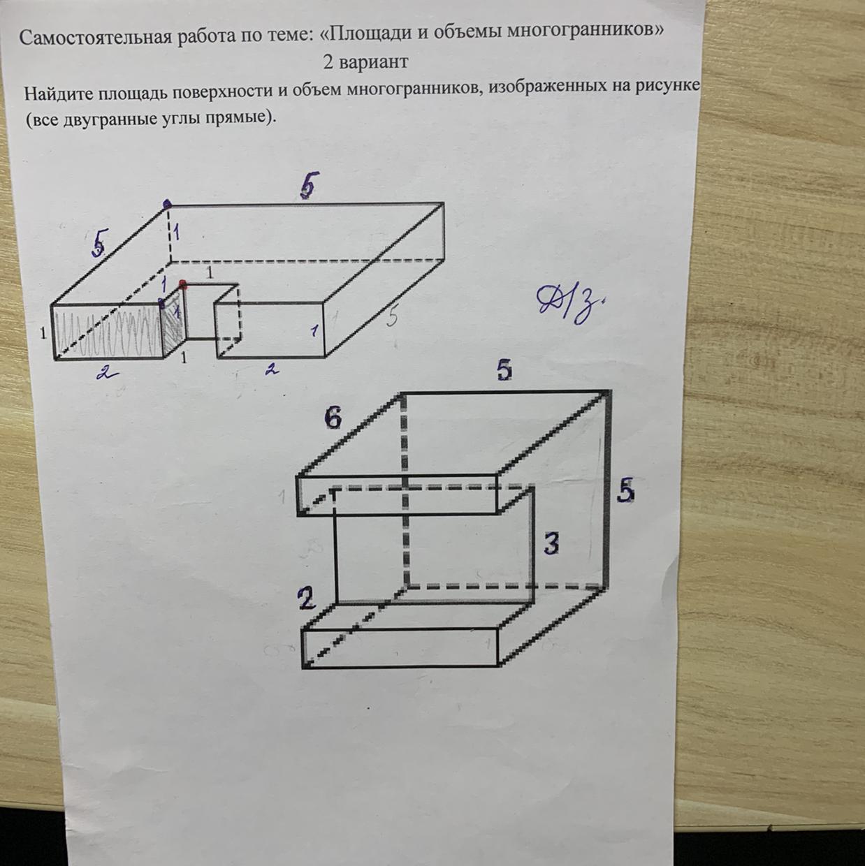 Поэтому объем фигуры будет равен разности объемов большого (V1) и малого (V2) параллелепипедов: