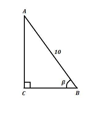Cторона АВ - лежит против прямого угла С ⇒АВ- гипотенуза, АС противолежащий углу В катет ⇒ АС=АВ*sin∠В=10*sinβ