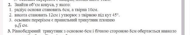 2) h=R=12см, т.к. образующая образует с высотой угол 45°, треугольник образованный образующей, высотой и радиусом равнобедренный.