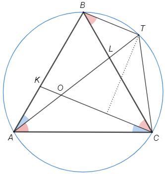 Даю 80 баллов! На сторонах AB и BC равностороннего треугольника ABC взяты точки K и L такие, что AK=BL. Отрезки CK и AL пересекаются в точке O. Серединный перпендикуляр к отрезку CO пересекает прямую AO в точке T. Докажите, что прямые BT и CO параллельны. (с рисунком, если есть возможность)