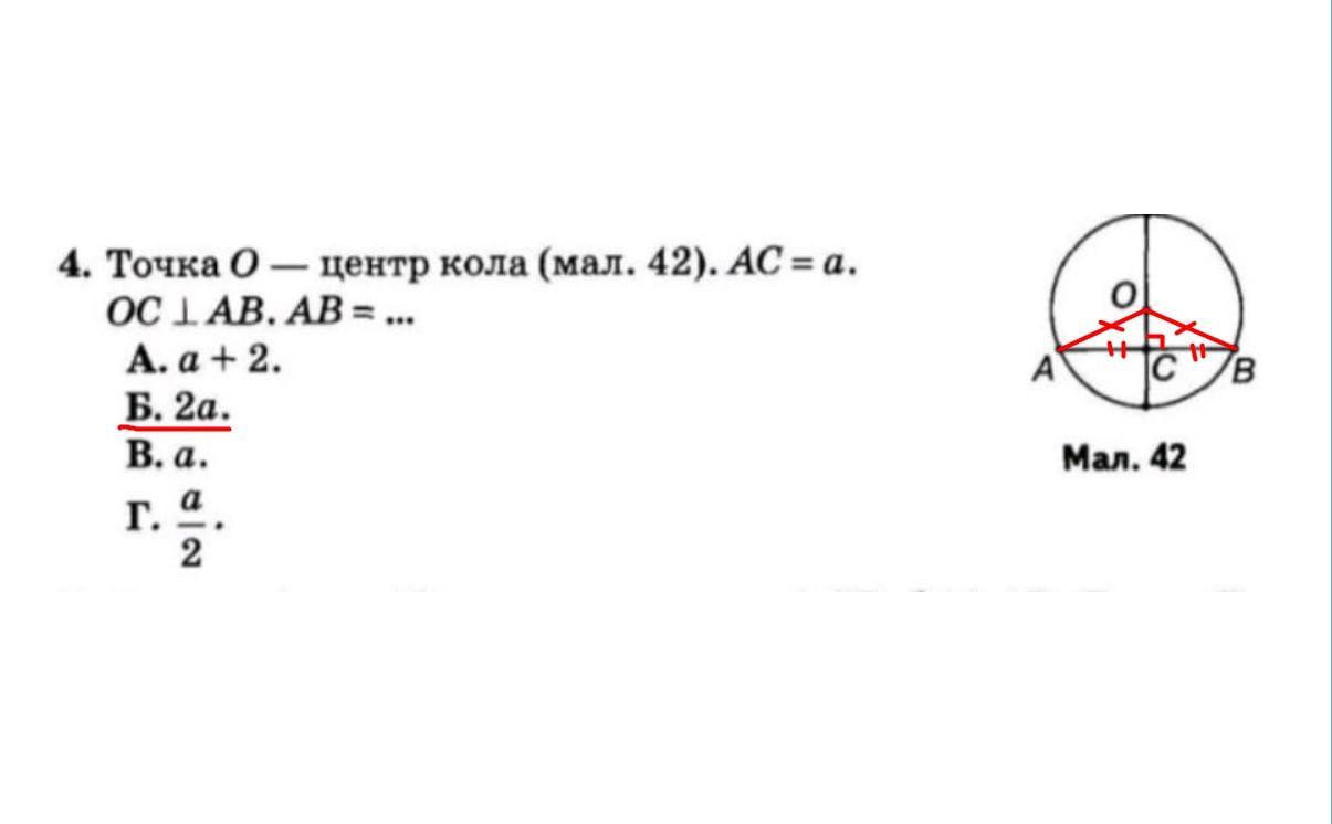 Как показано на вставленном рисунке, соединяем ОА и ОВ - это радиусы, а радиусы всегда равны, соответственно треугольник АОВ - равнобедренный, а значит высота ОС - и высота, и медиана, и биссектриса. А так как ОС - медиана, а АС=а , то АВ=2АС=2а