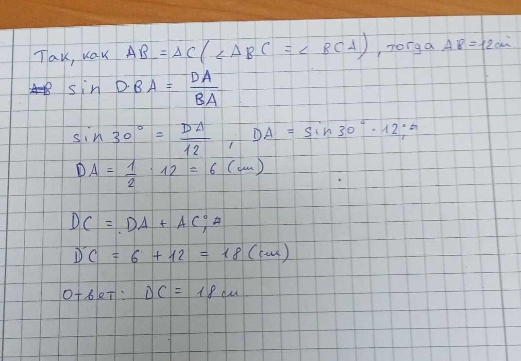 Розв'яжіть задачу за рисунком. Знайдіть DС, якщо АC=12см.У відповідь запишіть число.