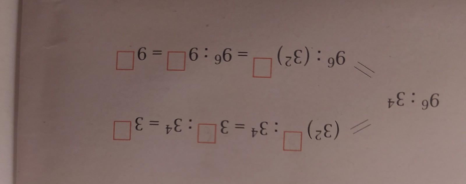 9⁶ : 3⁴ = (3²)⁶ : 3⁴ = 3¹² : 3⁴ = 3⁸