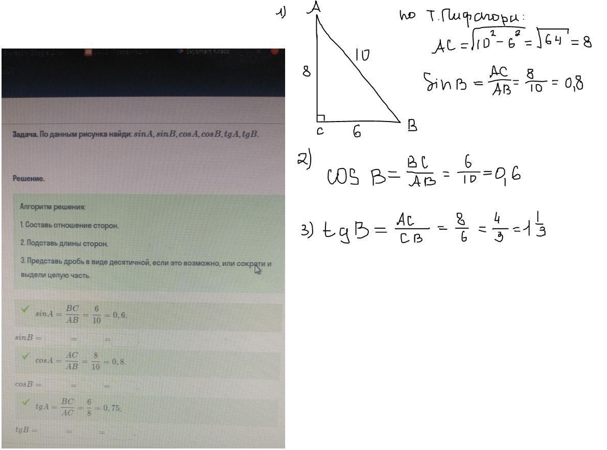 1. sinA=0,6; sinB-?