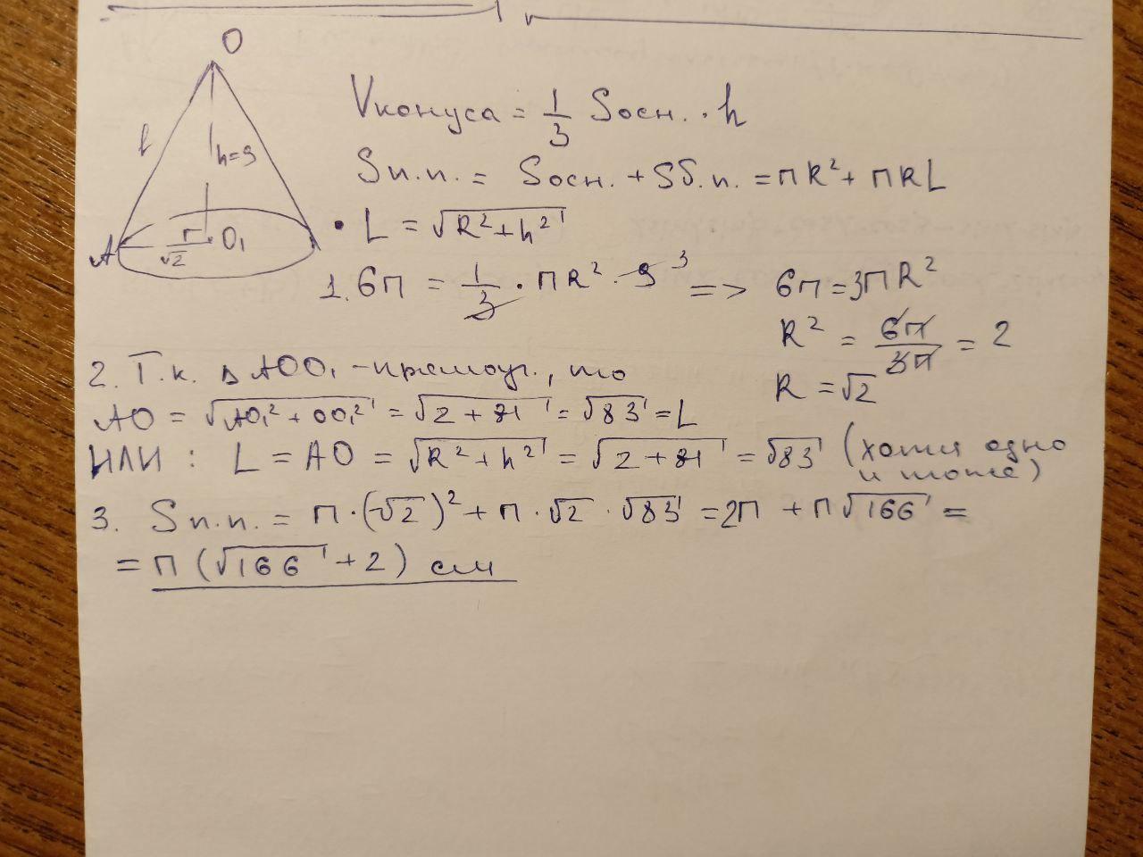 Высота конуса 9 см , а объём 6 по см ^3 , найти площадь полной поверхности конуса