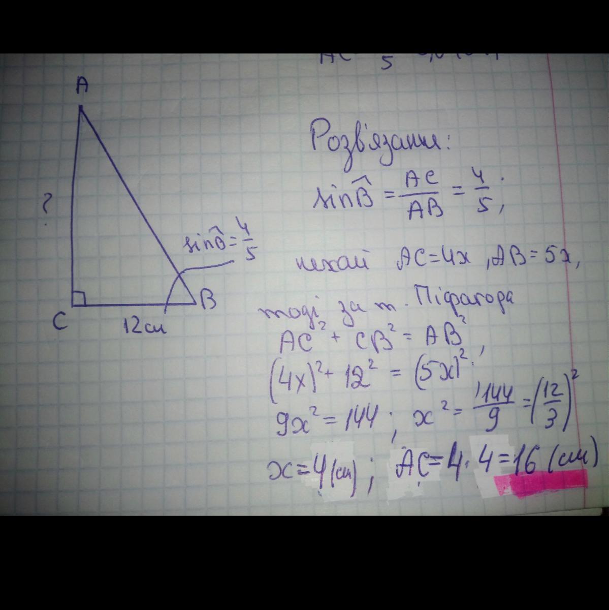 Трикутник ABC кут C дорівнює 90 градусів AC дорівнює 12 см сінус A дорівнює чотири з половиною обчисліть P