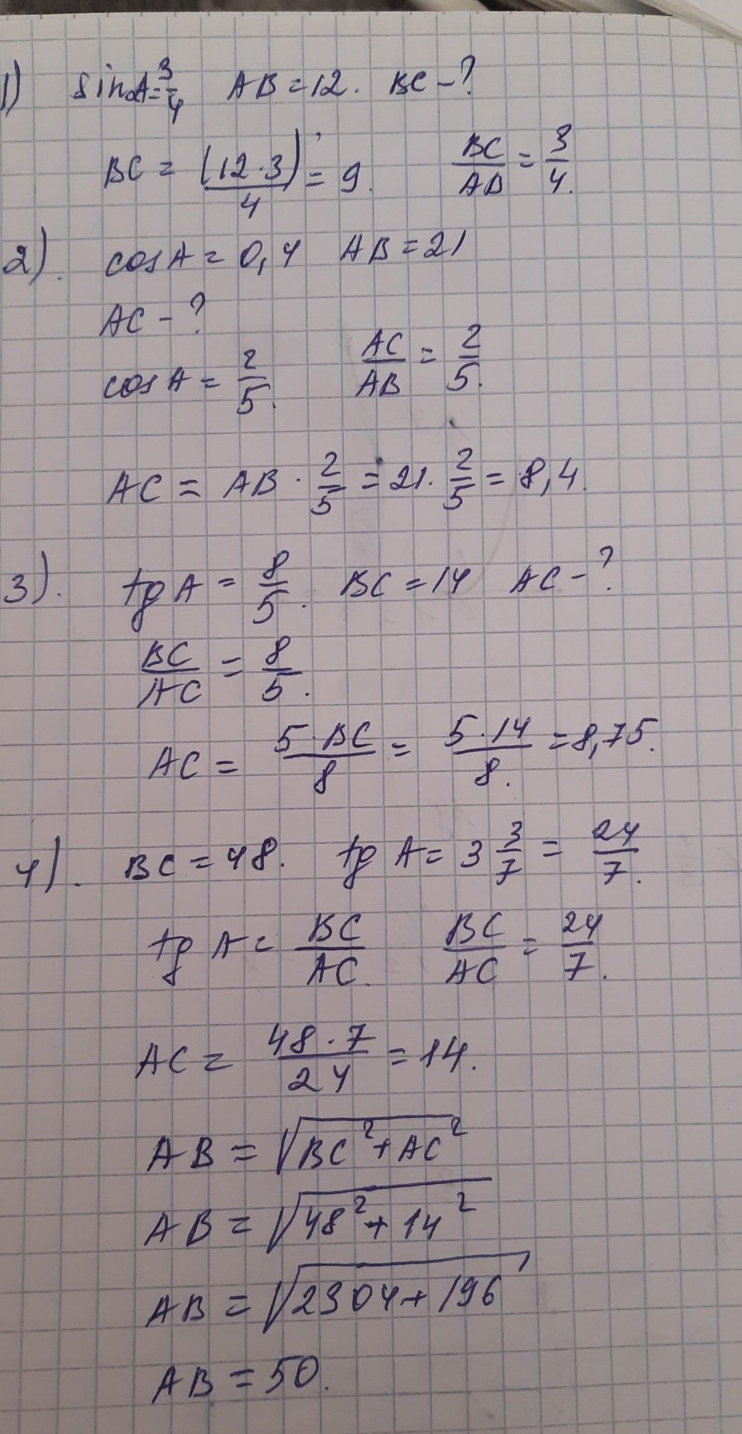 1. 1) sinA=3/4, AB=12 см, ВС-?