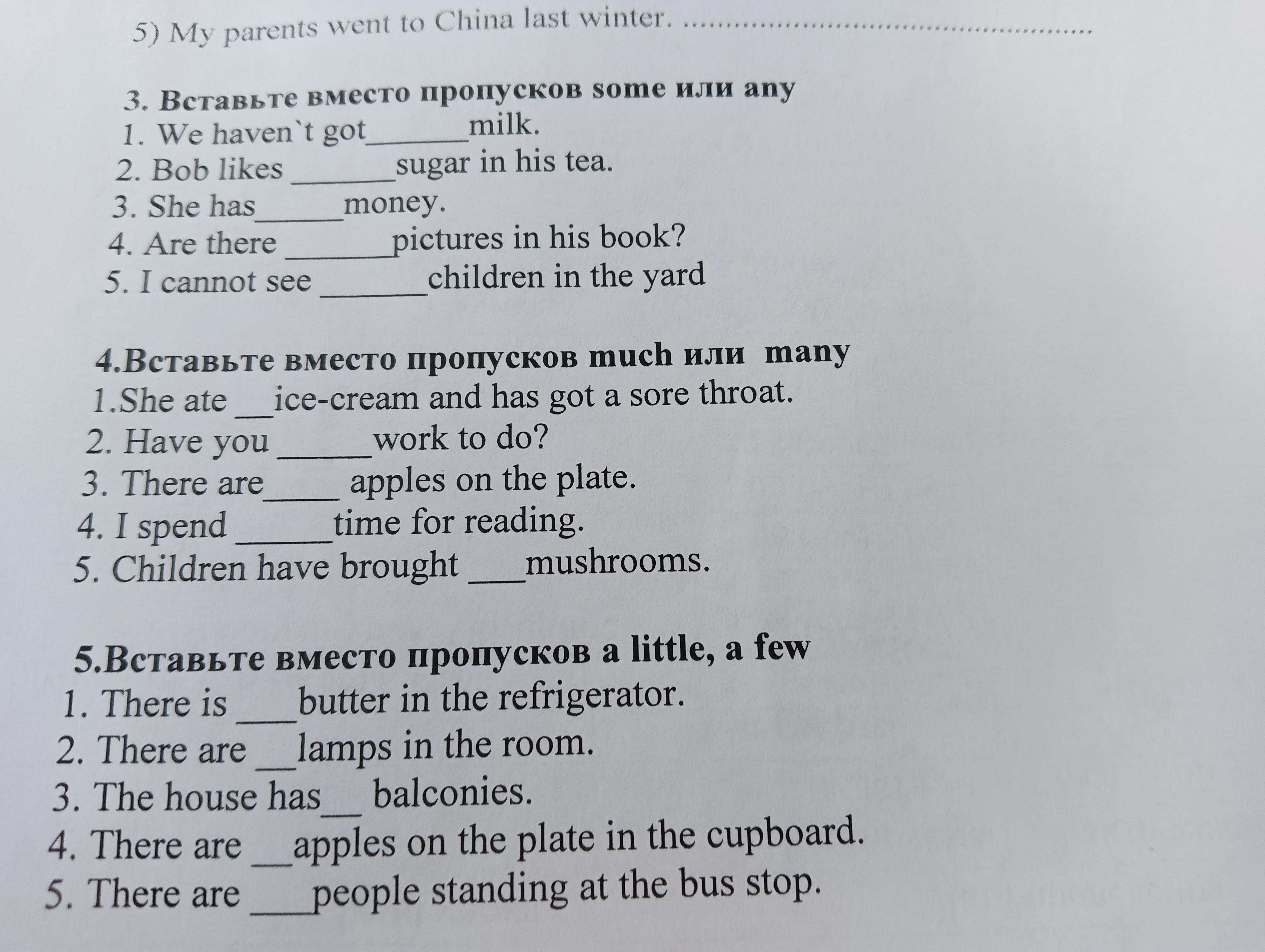 Местоимение any используется в вопросительных и отрицательных предложениях вместо some и означает «какой-либо, сколько-нибудь, никакой».
