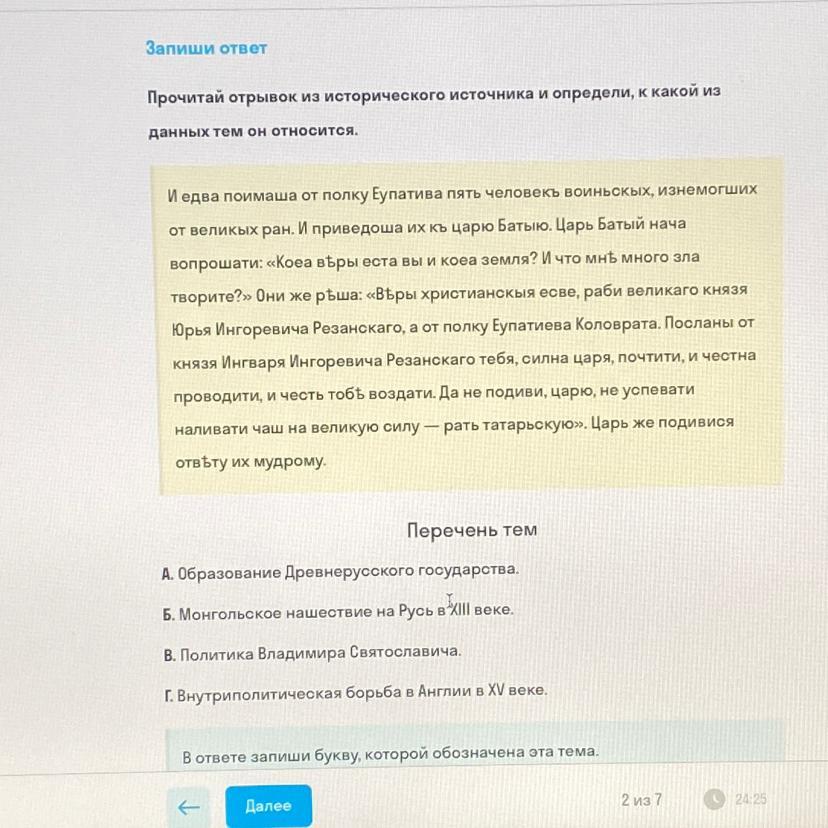 Период совпадает, в тексте речь ведется примерно 13 веке, в ответе Б - 13 век
