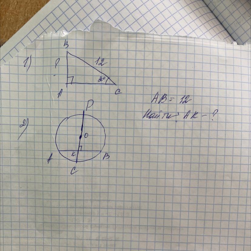 Угол находящийся напротив угла 30 градусов равен половине гипотенузы