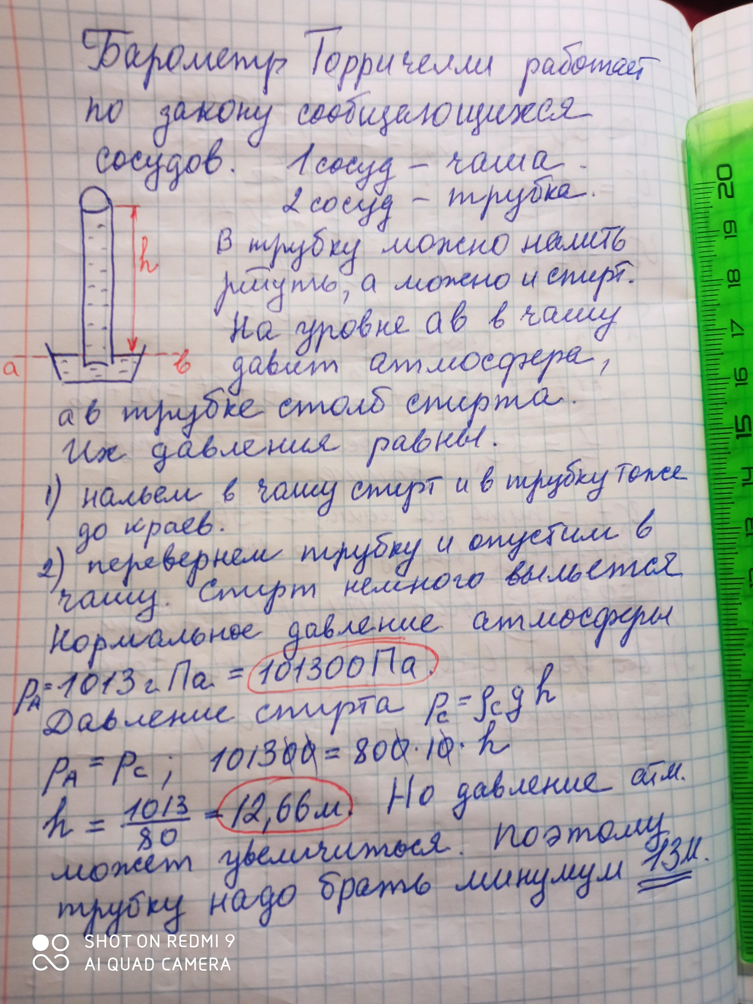 Какой высоты столбик спирта пришлось бы использовать ,чтобы уравновесить значение нормального атмосферного давления? ДАЮ 50 БАЛЛЛОВ