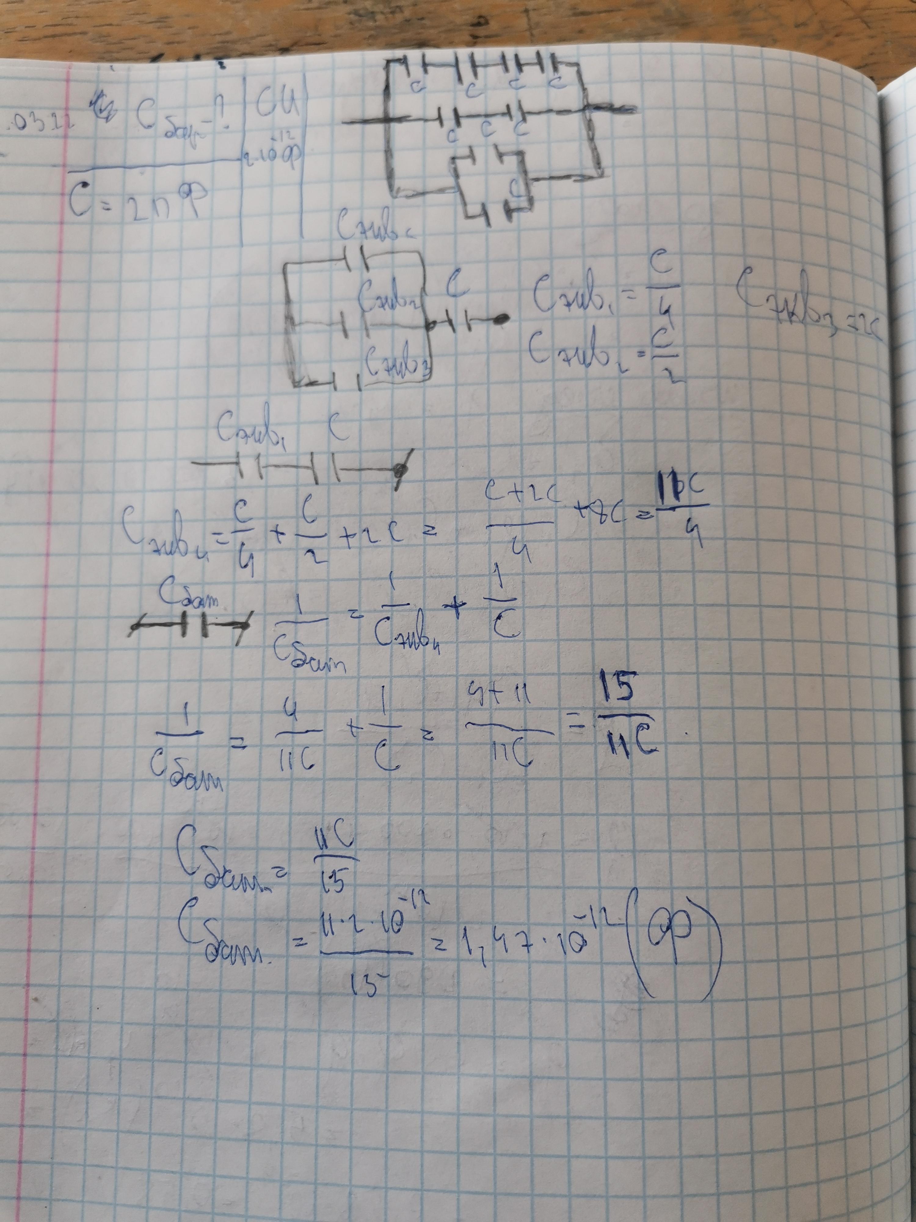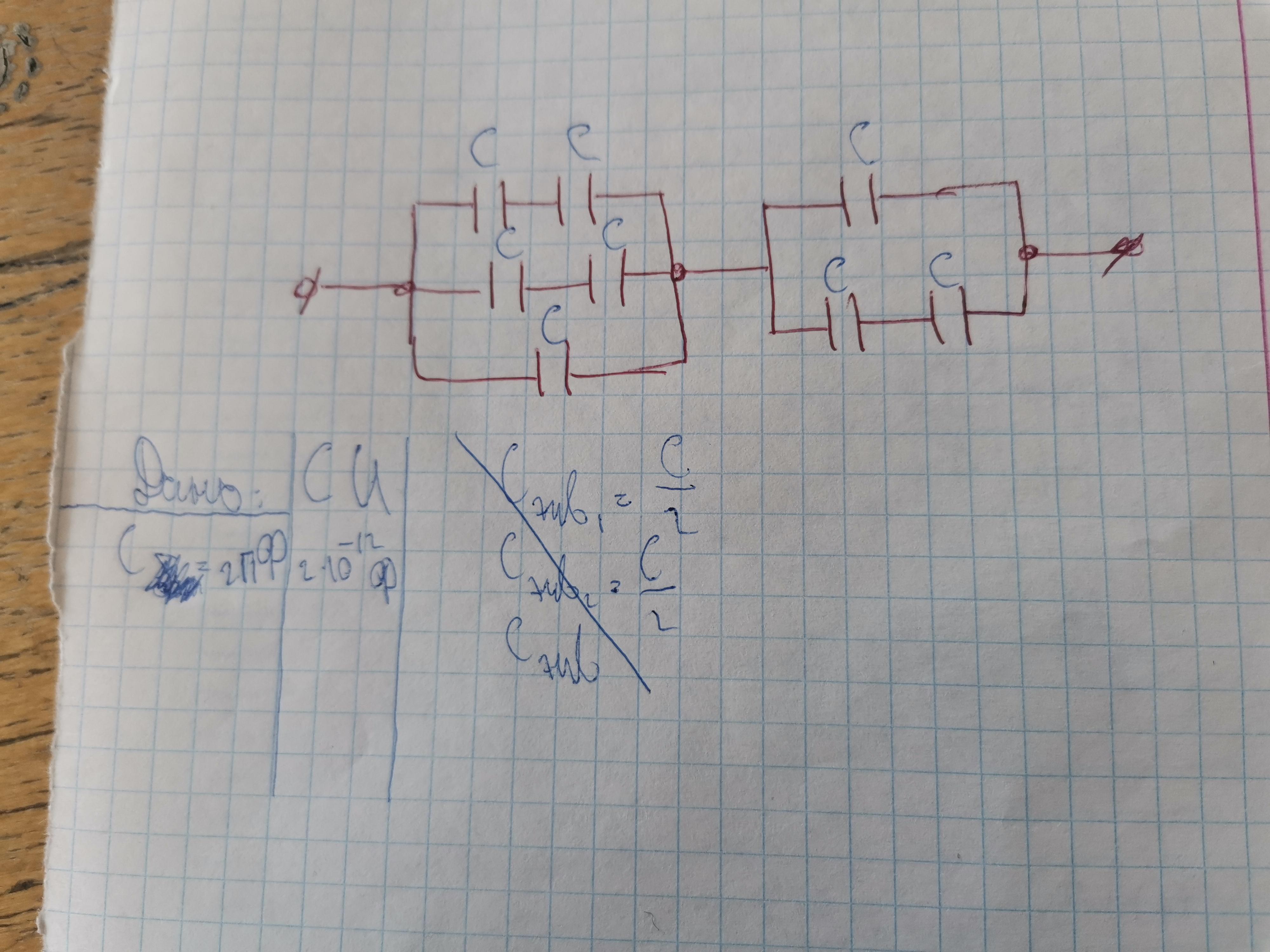 1) С1=С/2+С/2+С=2*С (первый параллельный участок)