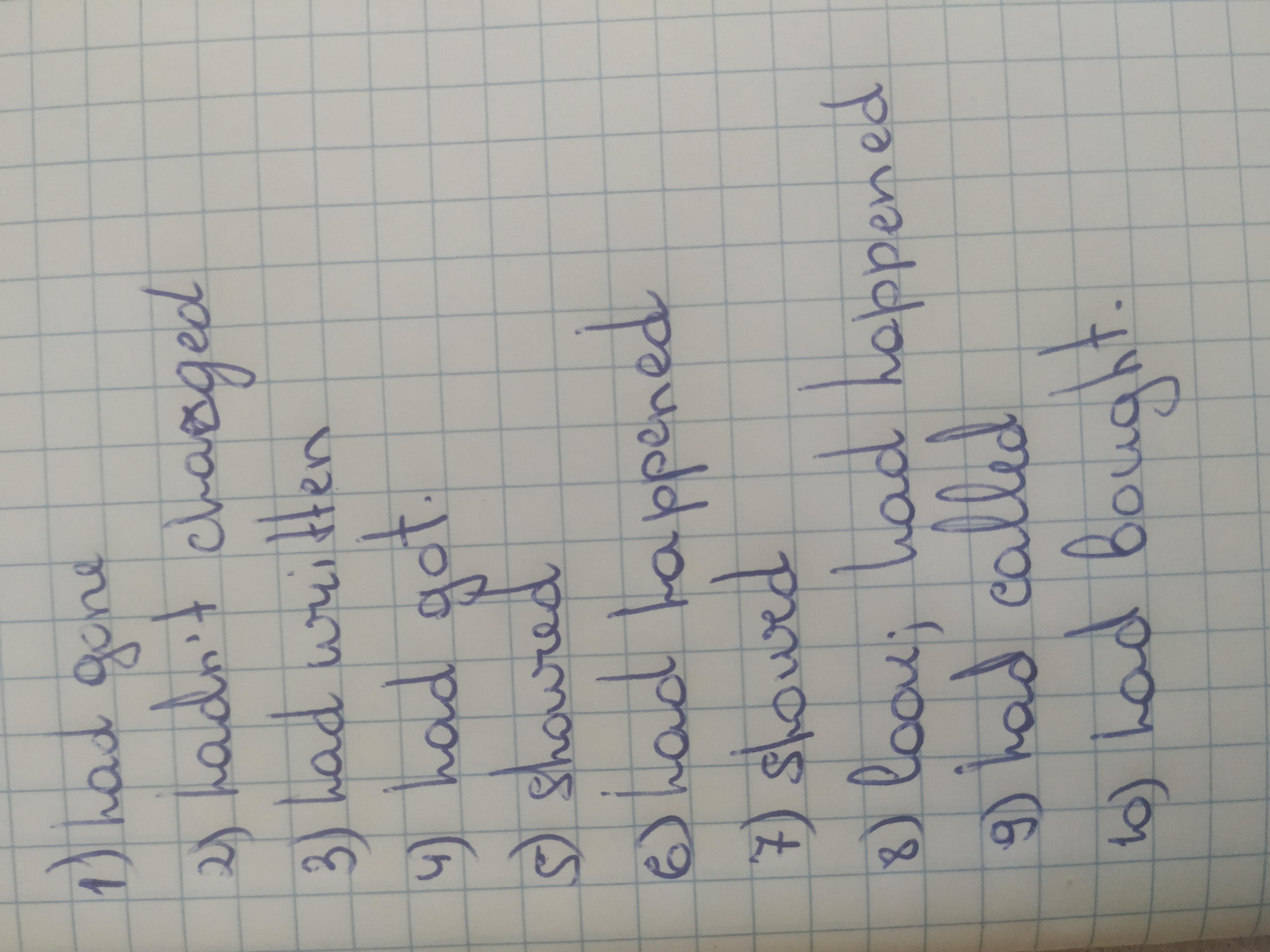 Kevin__(go) home by the time I arrived. 2. . My phone didn't work because I ( not charge) it. 3. . We__(write) the article by 3 o'clock yesterday 4. . They ___(get) salary by that time 5. I (show) him a letter after I (write) a letter. 6. I looked through the window, after the accident ( happen) 7. Sam ___(show) him a letter after I (write) a letter. 8. I (look) through the window, after the accident ( happen) 9. . You( call) him before I had dinner. 10. After She( buy) a T-shirt in the sales , she gave it to me as a birthday present.
