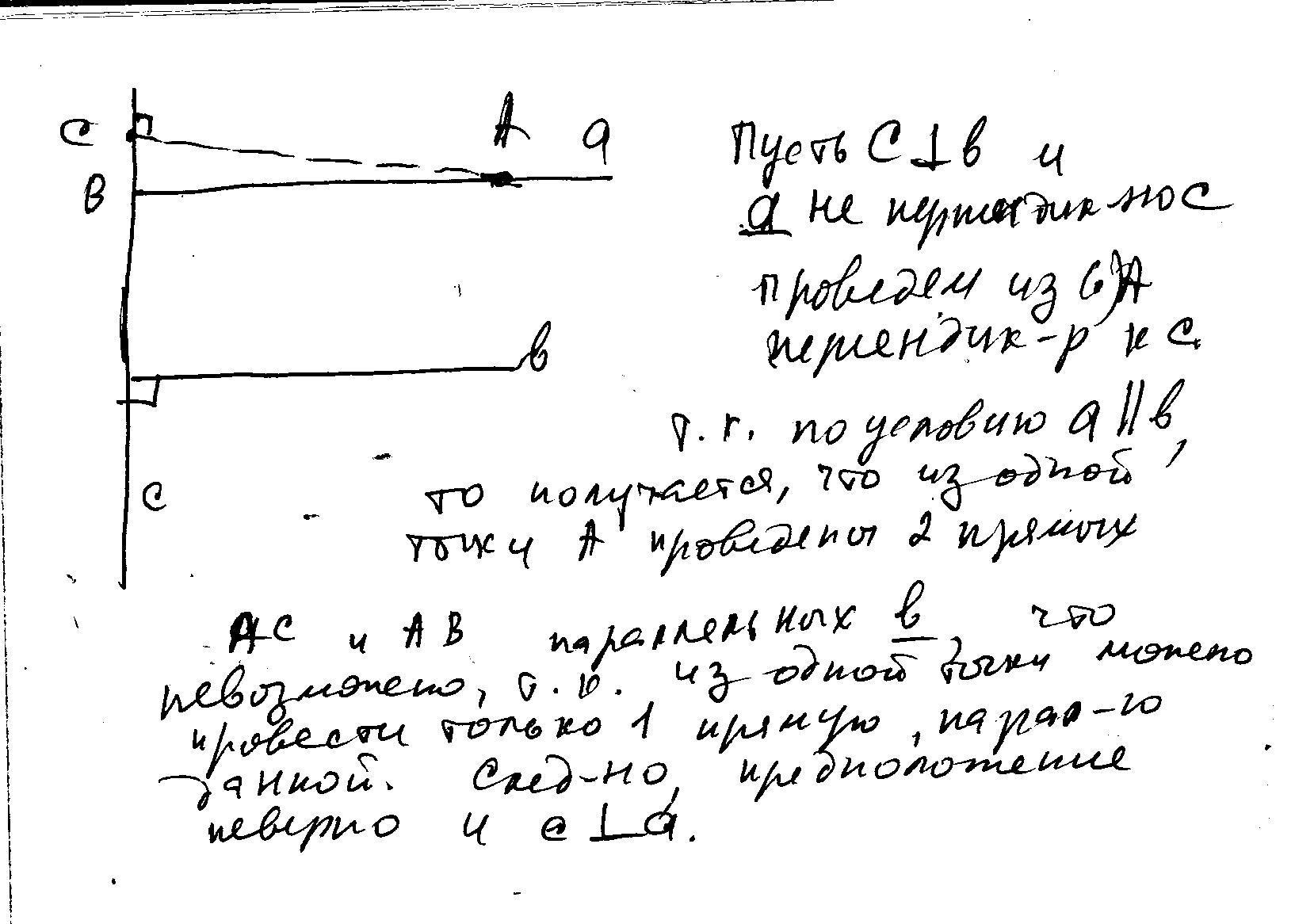 Докажите,что если прямая перпендикулярна к одной из двух параллельных прямых ,то она перпендикулярна и к другой.