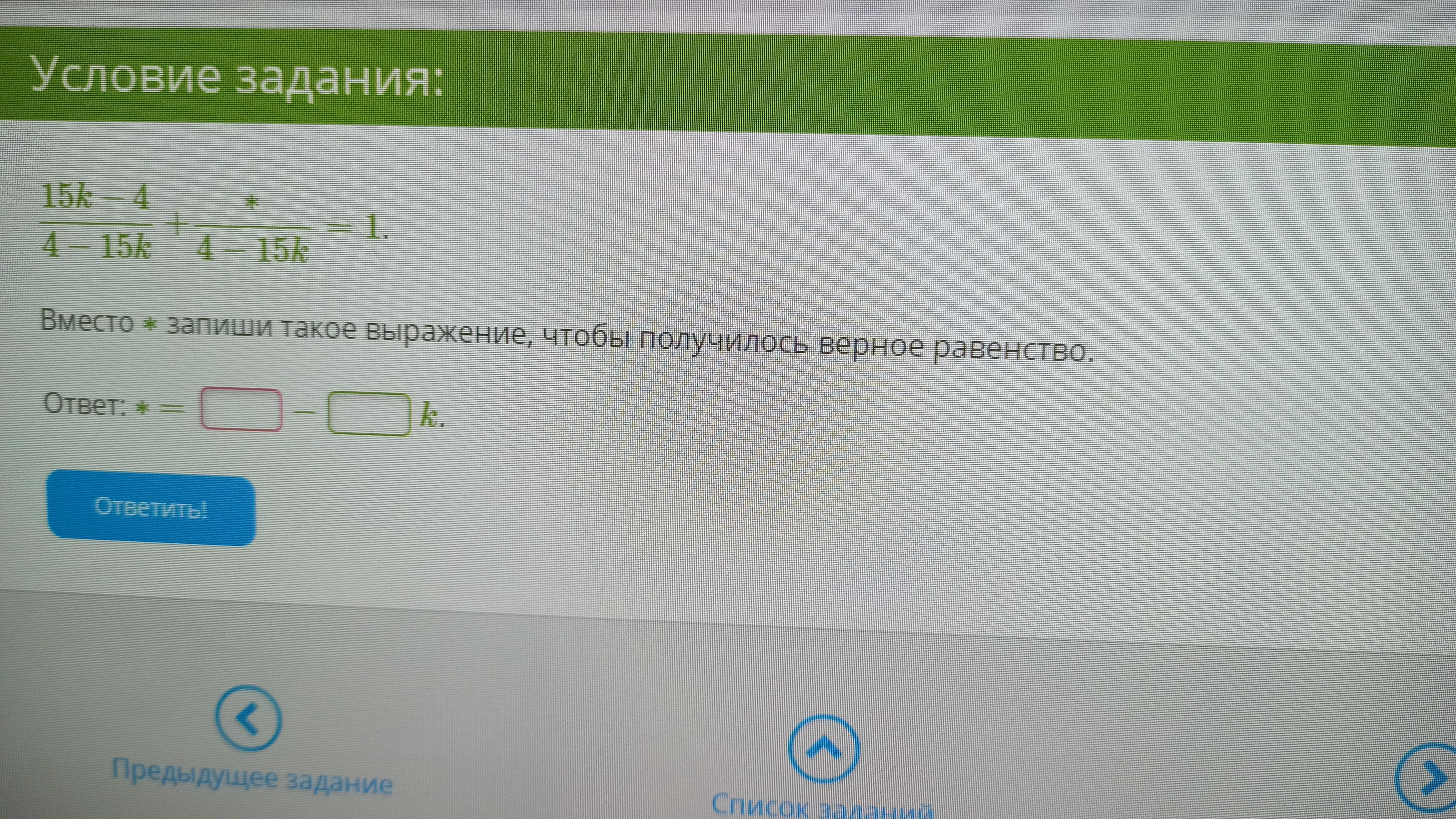 Нужное нам выражение обозначили через х. Выполнили преобразования, затем слева записали дробь с х, справа - не содержащее х. Слева и справа записаны дроби с одинаковыми знаменателями, тогда, чтобы дроби были равны, должны быть равными и их числители. Запись решения на фото.