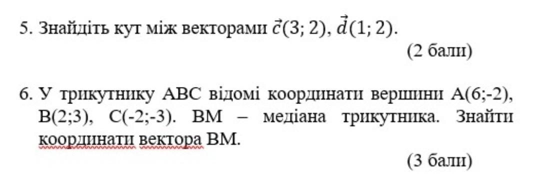 6) спочатку шукаємо М, точка М лежить на стороні АС , того шукаємо як середину вектора