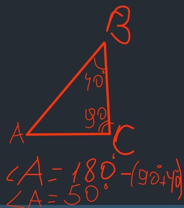 кут c— 90°, кут В - кут А= 40°