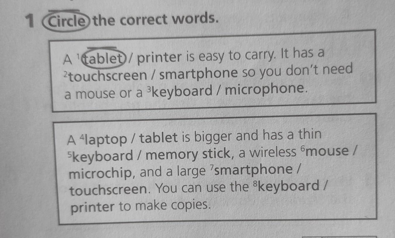 2 - touchscreen, 3)keyboard; 4) laptop; 5)memory stick; 6)mouse; 7)touchscreen; 8)printer