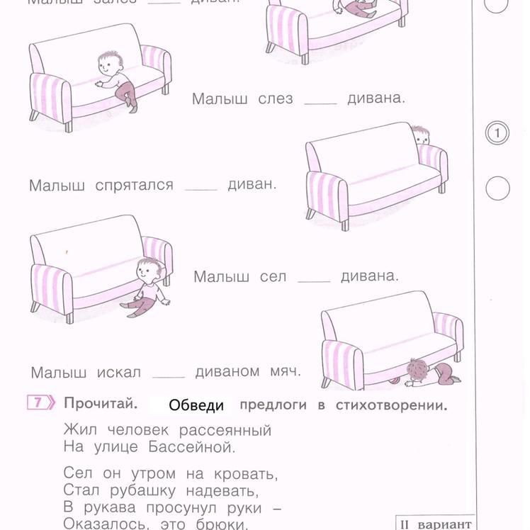 Малыш слез с дивана, Малыш спрятался за диван, Малыш сел с дивана, Малыш искал под диваном мяч. 7. На, На, В, Это.