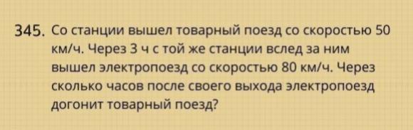 3. Узнаем через сколько часов после своего выхода электропоезд догонит товарный поезд.
