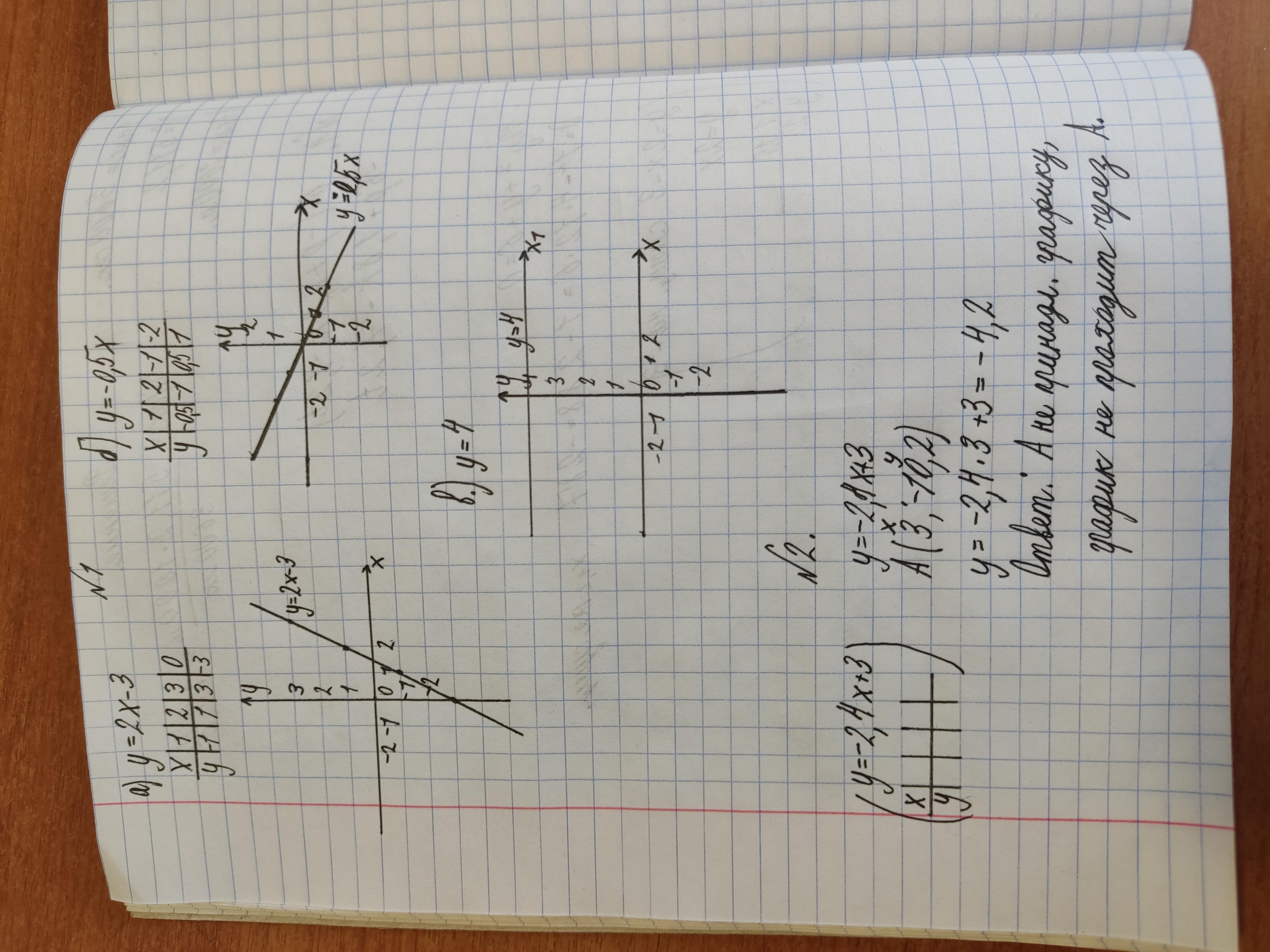1)постройте график функции а) y=2х-3 б) у=-0,5х в) у=4