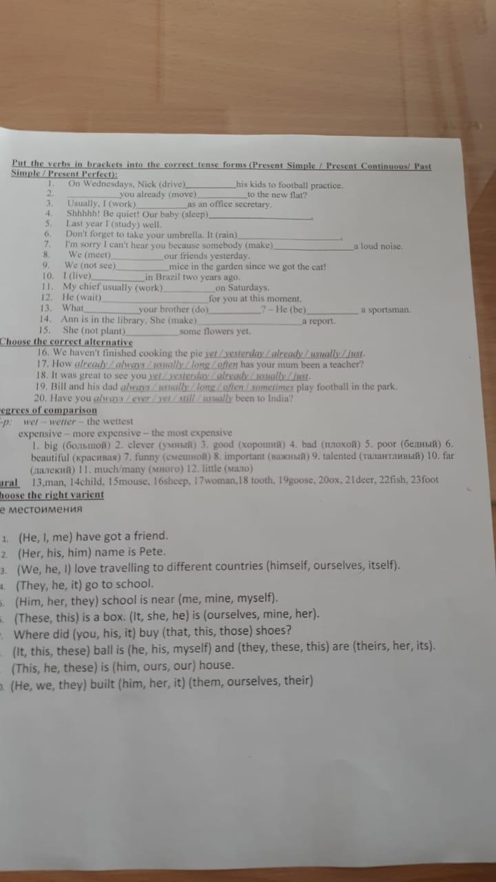 I have got a friend. His name is Pete. We love travelling to different countries ourselves. They go to school. Their school is near mine. This is a box. It is her present. Where did you buy those shoes?