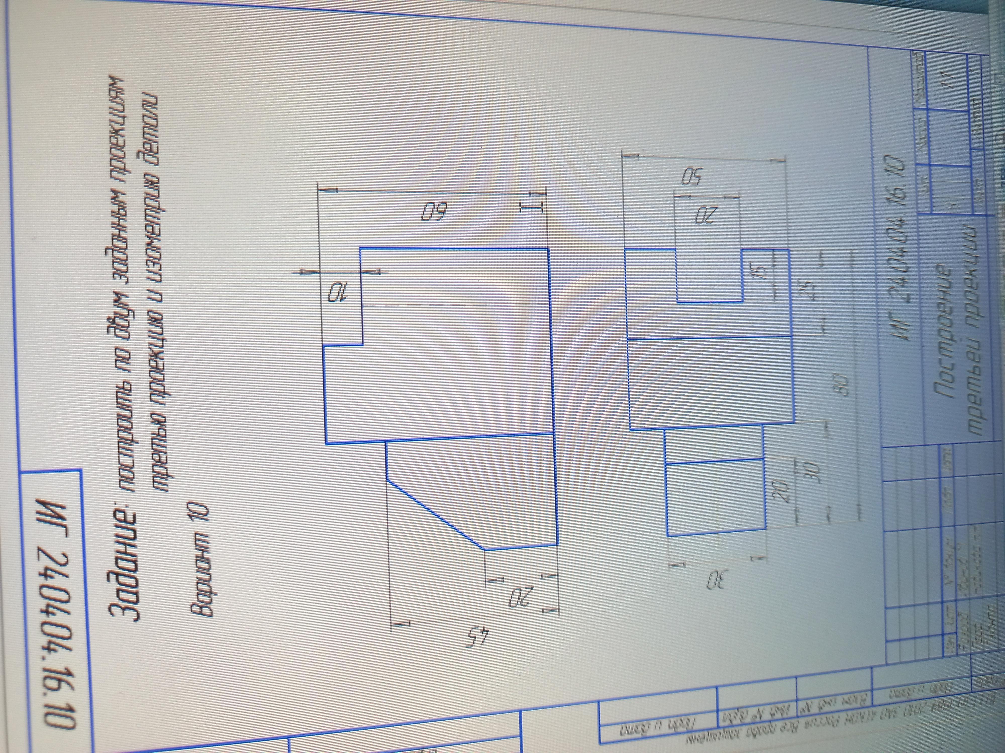 1.По двум проекциям построить третью проекцию и в идеале изометрию детали пожалуйста