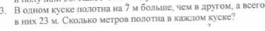 Ответ: в 1куске полотна 8м А в другом 15м