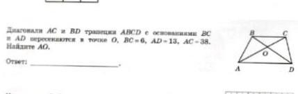 Основания трапеции параллельны, диагонали - секущие. При пересечении между собой диагонали образуют с основаниями трапеции треугольники, в которых углы в точке пересечения диагоналей равны как вертикальные, углы при основаниях - как накрестлежащие. ⇒