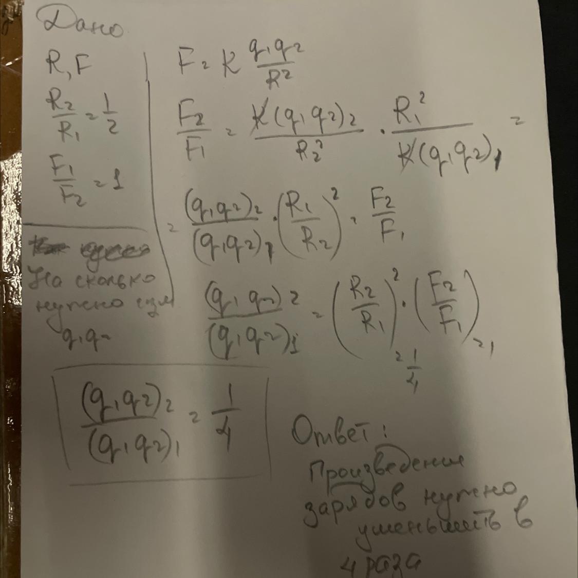 между частицами уменьшили в 2 раза. Чтобы сила взаимодействия
