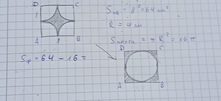 Чертёж тебе зачем? Заштрихованная фигура - это по сути площадь круга с диаметром 8 см