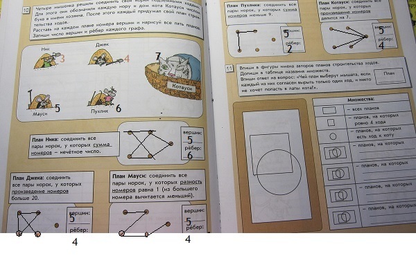 информатика 4 класс часть 2 стр.8-9 Впиши в фигуры имена авторов планов строительства ходов .Допиши в таблице названия множеств. и тд.