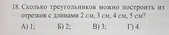 а именно 2cм+4см>5см; 2см+5см>4см ;4см+5см>2см и 2см+3см>4см; 2см+4см>3см; 3см+4см>2см
