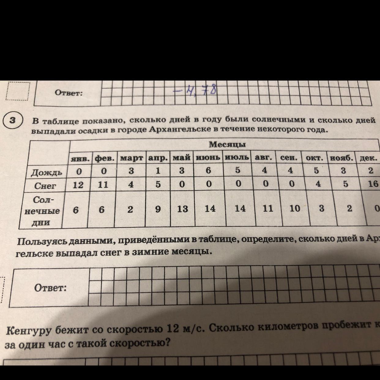 Зимние месяцы это - декабрь, январь, февраль. Смотрим в таблице сколько выпало снега 16+12+11= 39.