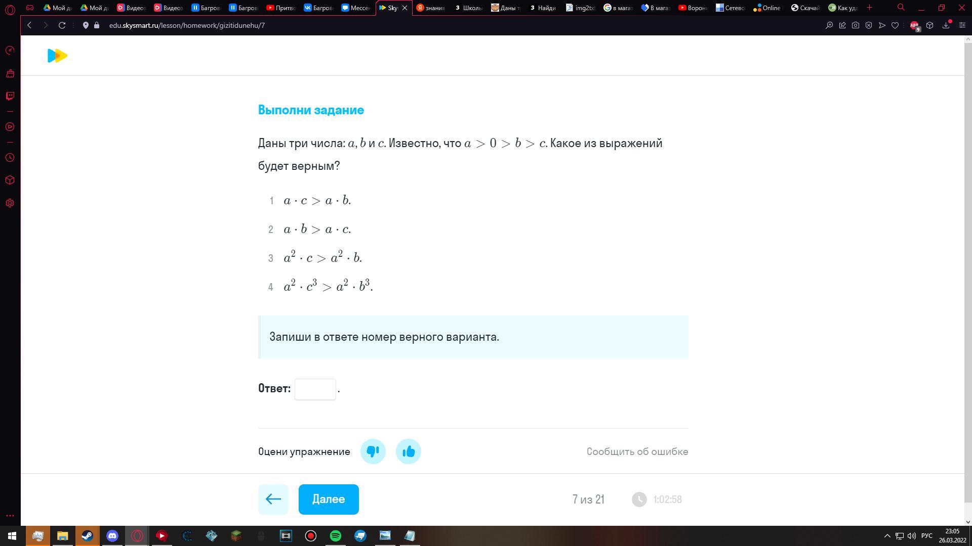 Так как число b больше числа c, не может быть так что при умножений числа c с числом a, оно будет привышать умножение a*b