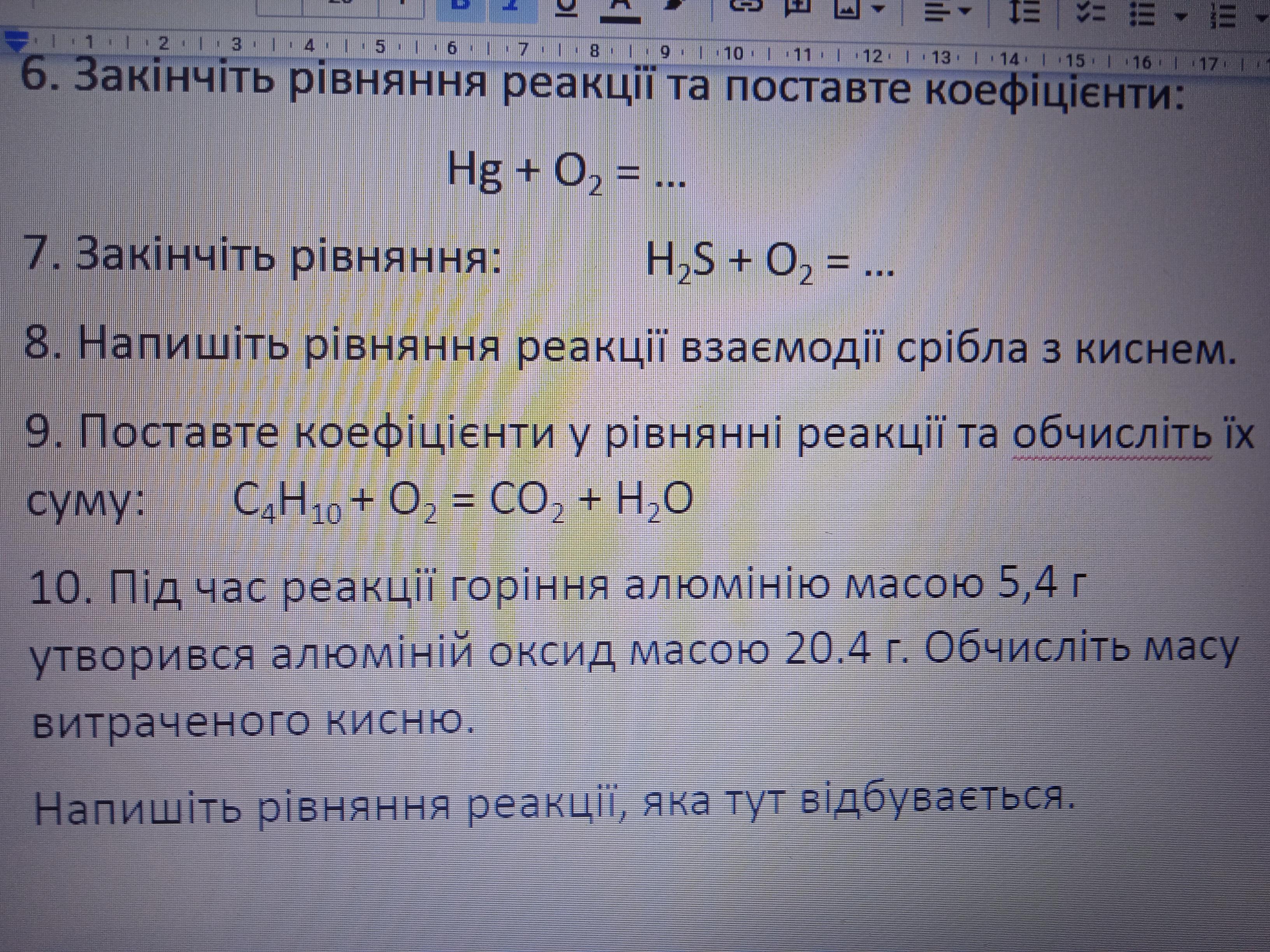 7) 2H2S + 3O2 = 2SO2 + 2H2O