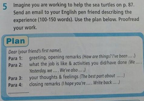 В задании написано: представьте что вы помогаете морским черепахам. Напишите письмо своему американскому другу по образцу. В письме должно быть 100-150 слов.