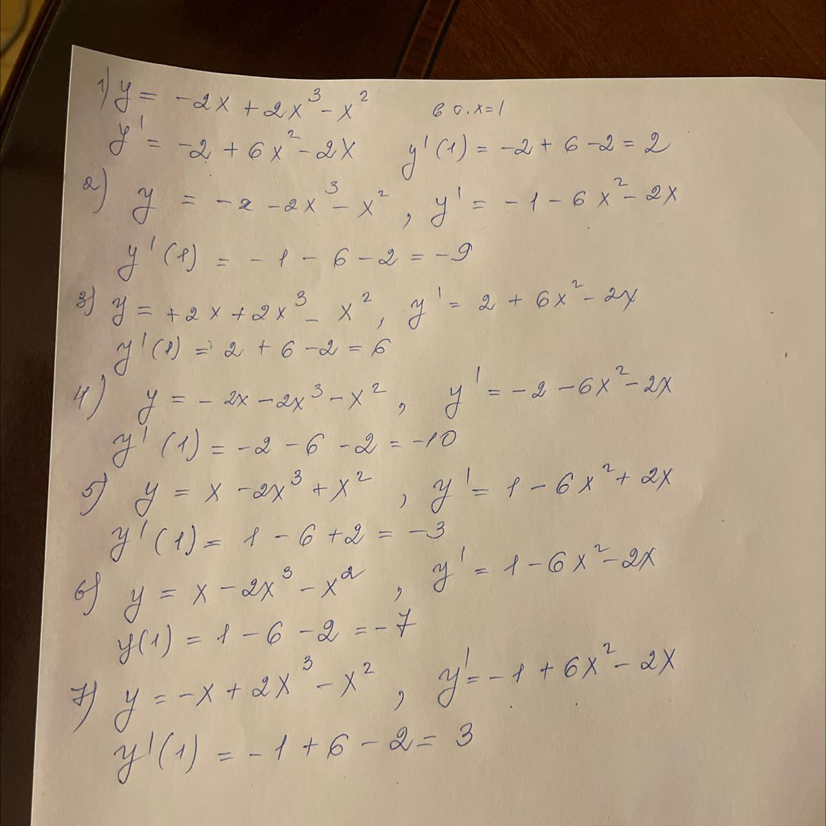 вычислить производную функции у= -2x+2x^3-x2 в точке х=1