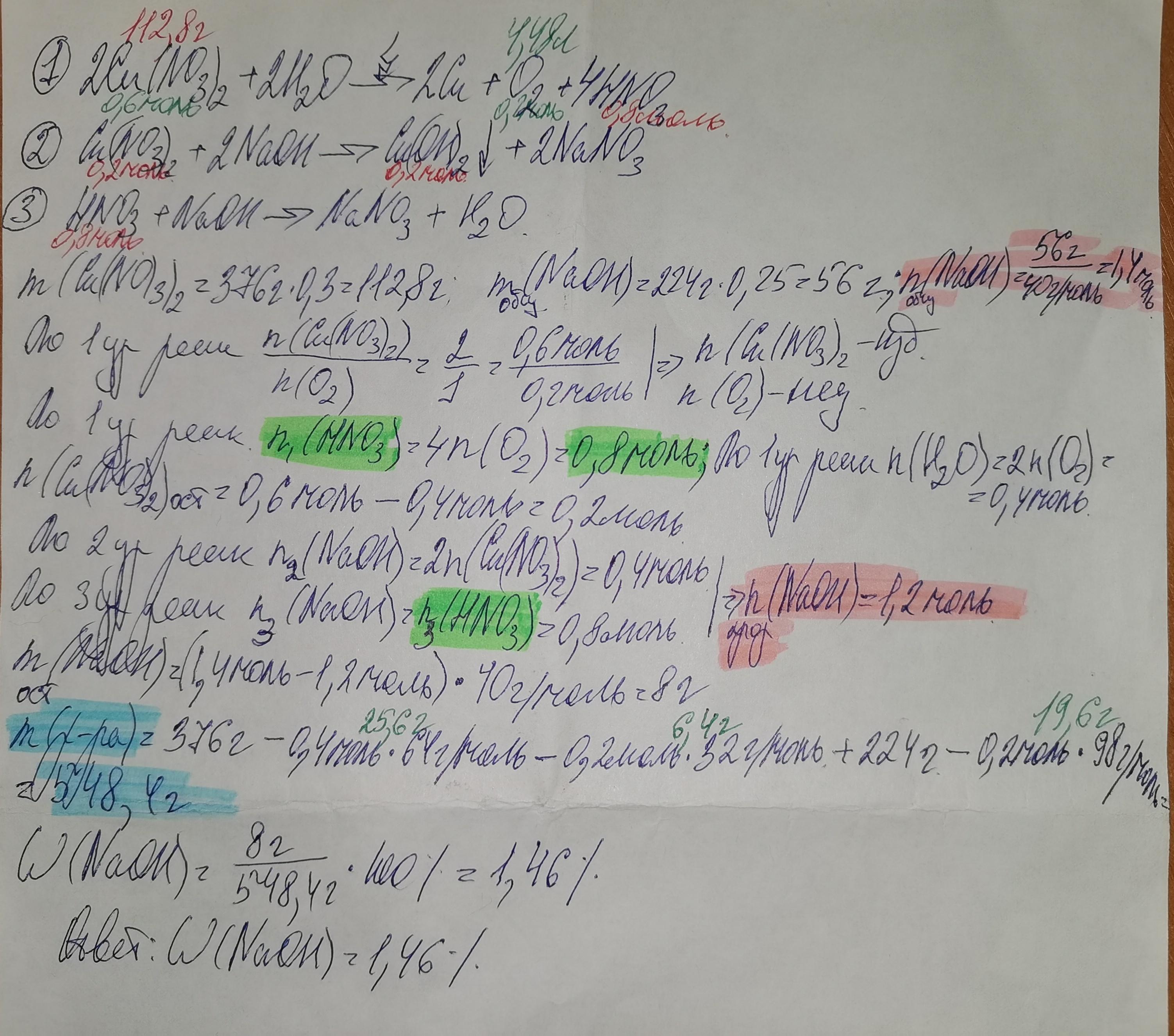 для проведения электролиза (на инертных электродах) взяли 376 г 30%-ного раствора нитрата меди(II). после того как на аноде выделилось 4,48 л (н.у.) газа, процесс остановили. к образовавшемуся в процессе электролиза раствору добавили 224 г 25%-ного раствора гидроксида натрия. определите массовую долю щёлочи в полученном растворе
