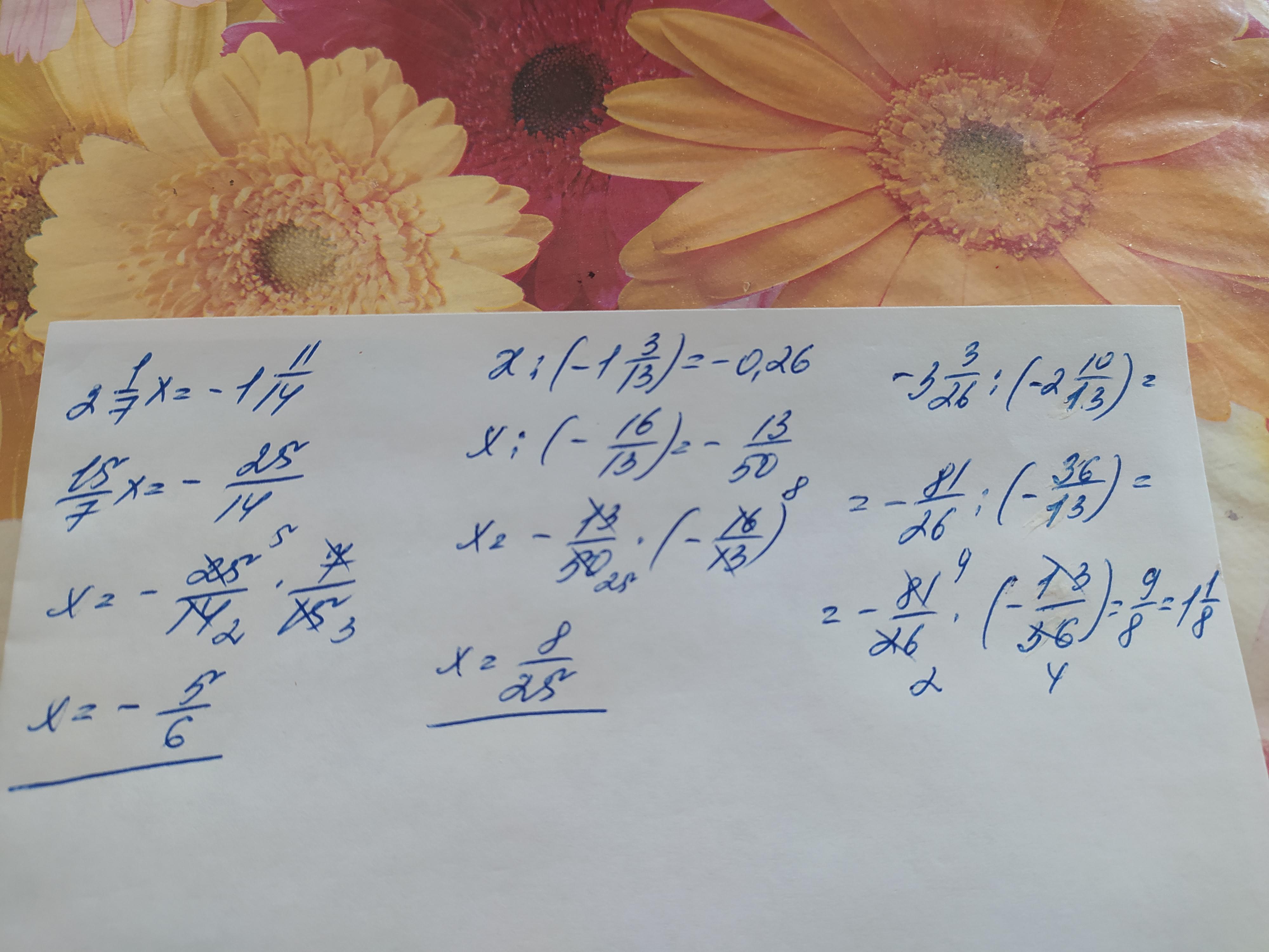 х : (-1 3/13) = -0,26; х=-0,26 * (-16/13); х=0,32