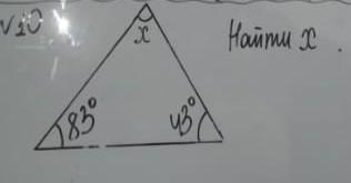 х = 180° - (83° + 43°) = 180° - 126° = 54°