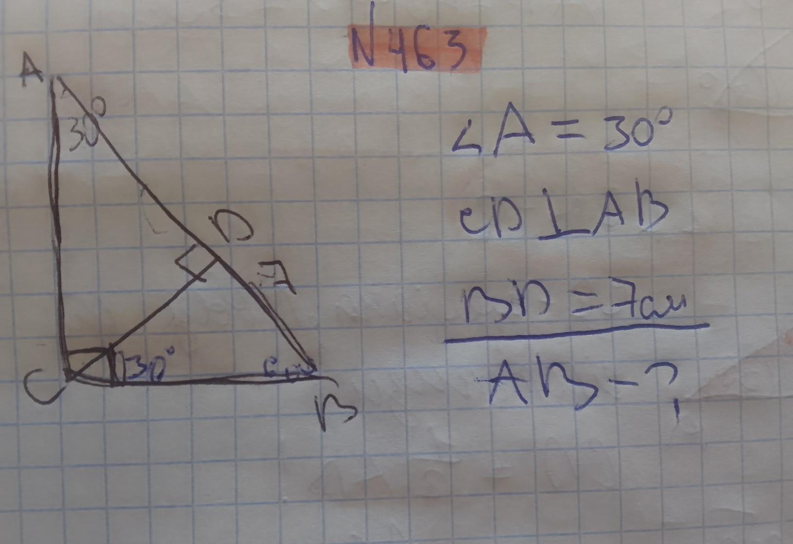 Катет який лежить напроти кута 30° в 2 рази менший за гіпотинузу.