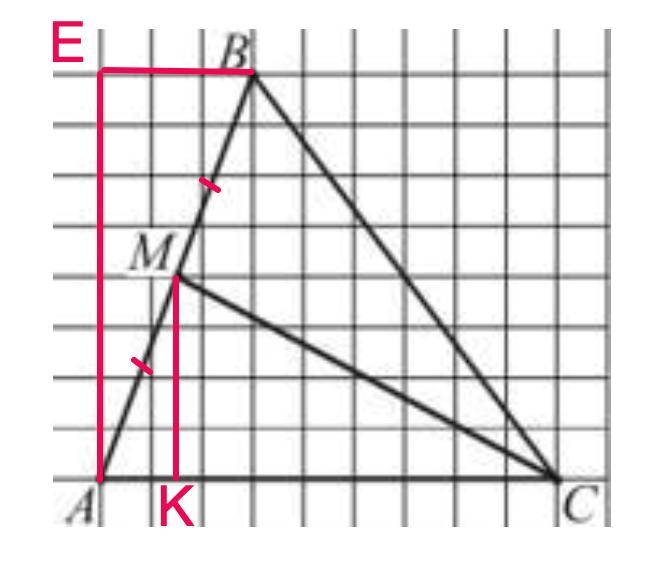 Из точки М опустим перпендикуляр МК на сторону АС. Построим прямоугольный треугольник АЕВ с гипотенузой АВ.