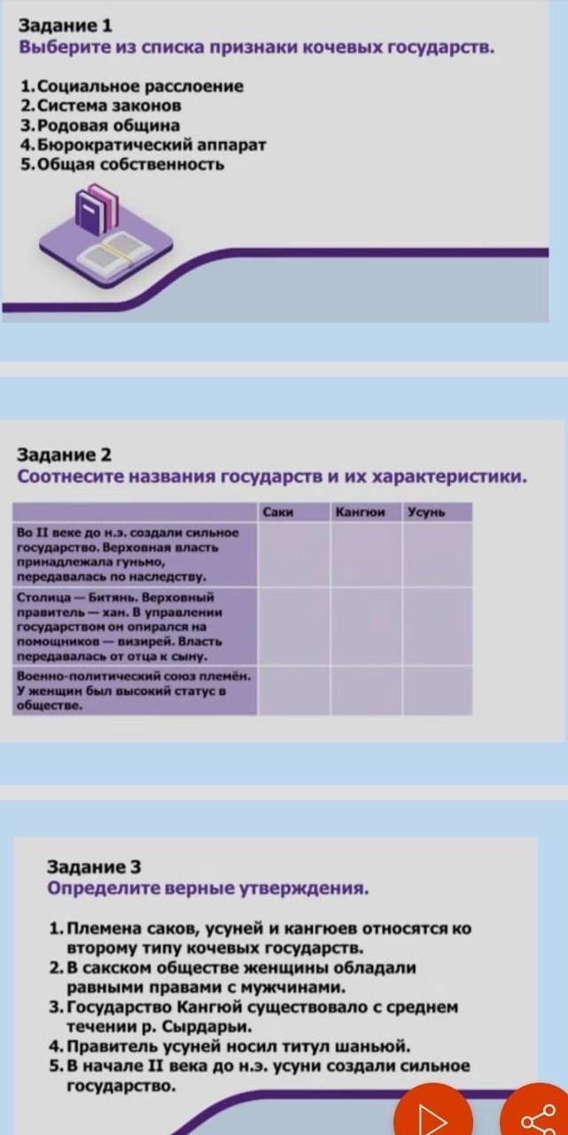 История нужны ответы на 3 задания.