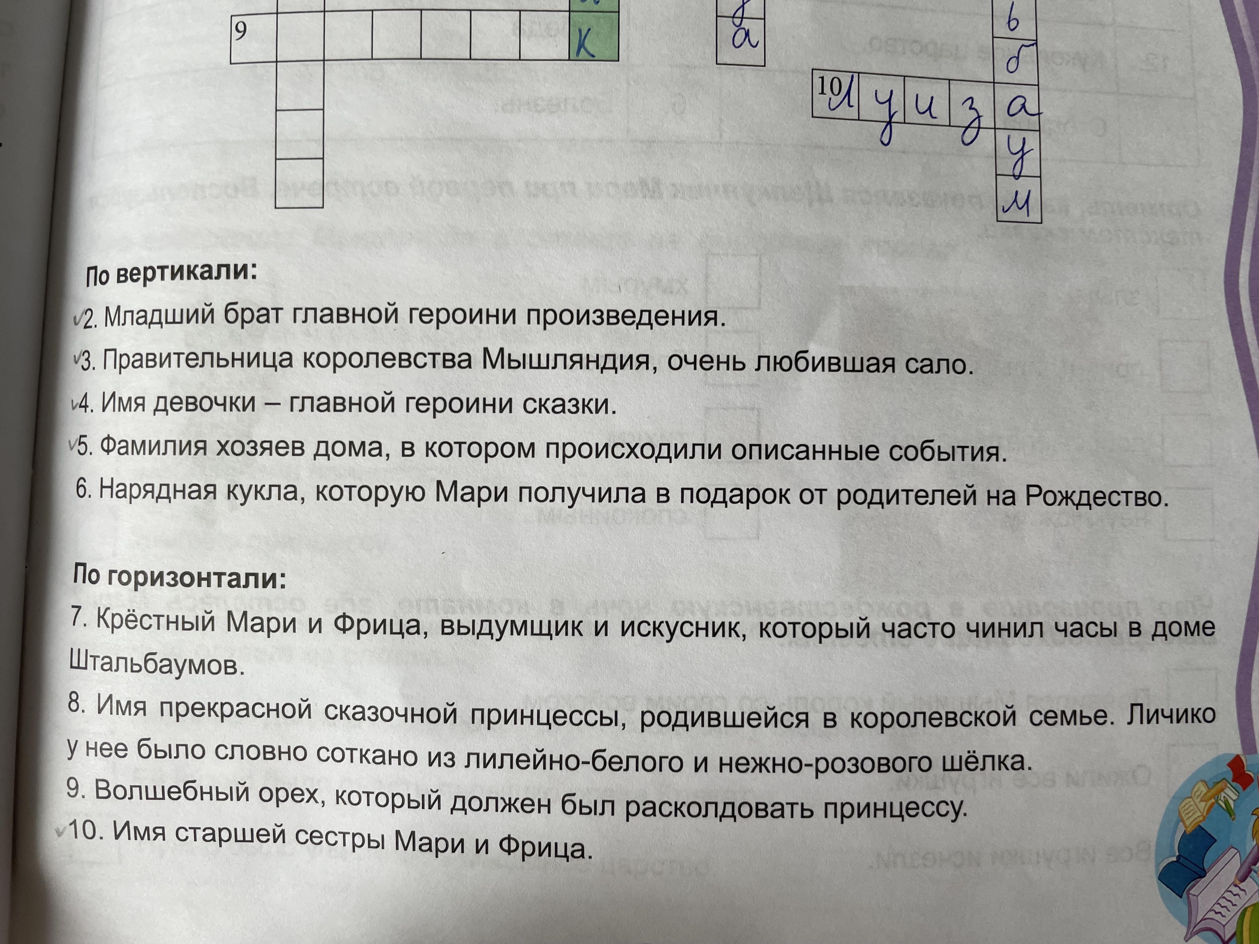 Помогите решить кроссворд по сказке Щелкунчик и Мышиный король (см. вложение)