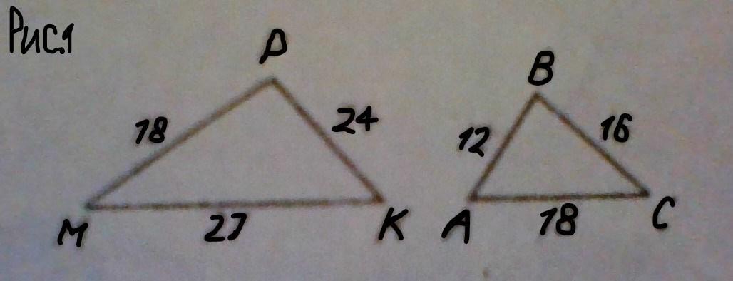 3.Используя данные рисунка 1, определите отношение периметров треугольников MKP и ABC.