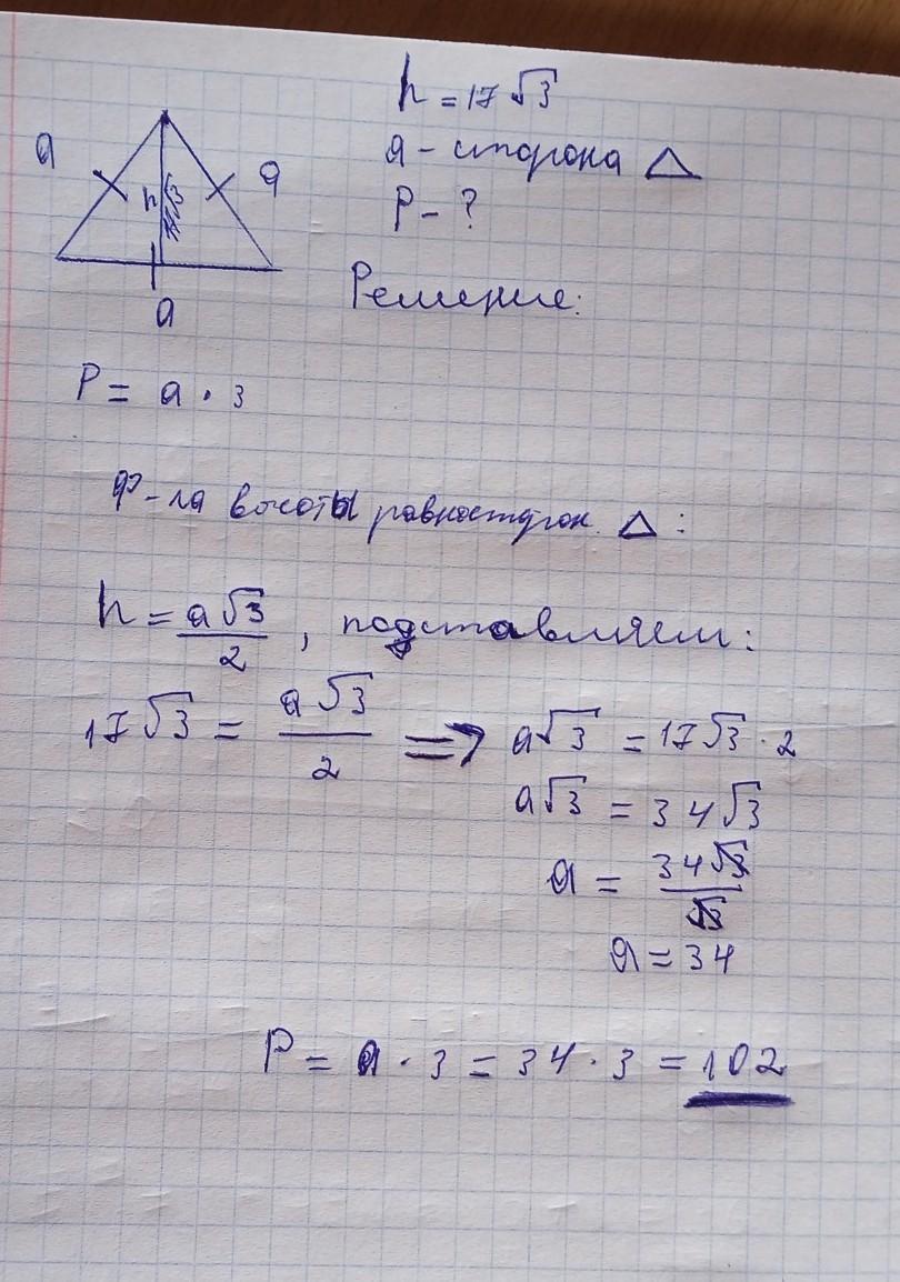 Высота равностороннего треугольника равна