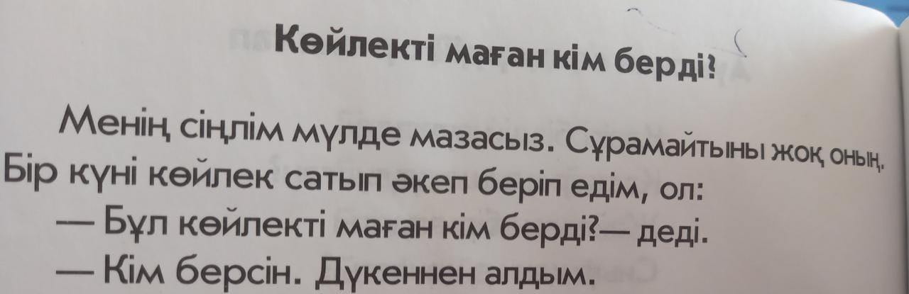 - Мәссаған, сен алдың ба? Өте әдемі көйлек екен көп көп Рахмет деді.Ол көйлекті менің алғаныма қатты қуанып мені қатты құшақтап алды.Сол күннен бастап ол мазасыздығын қойып екеуіміздің арамыз түзелді.