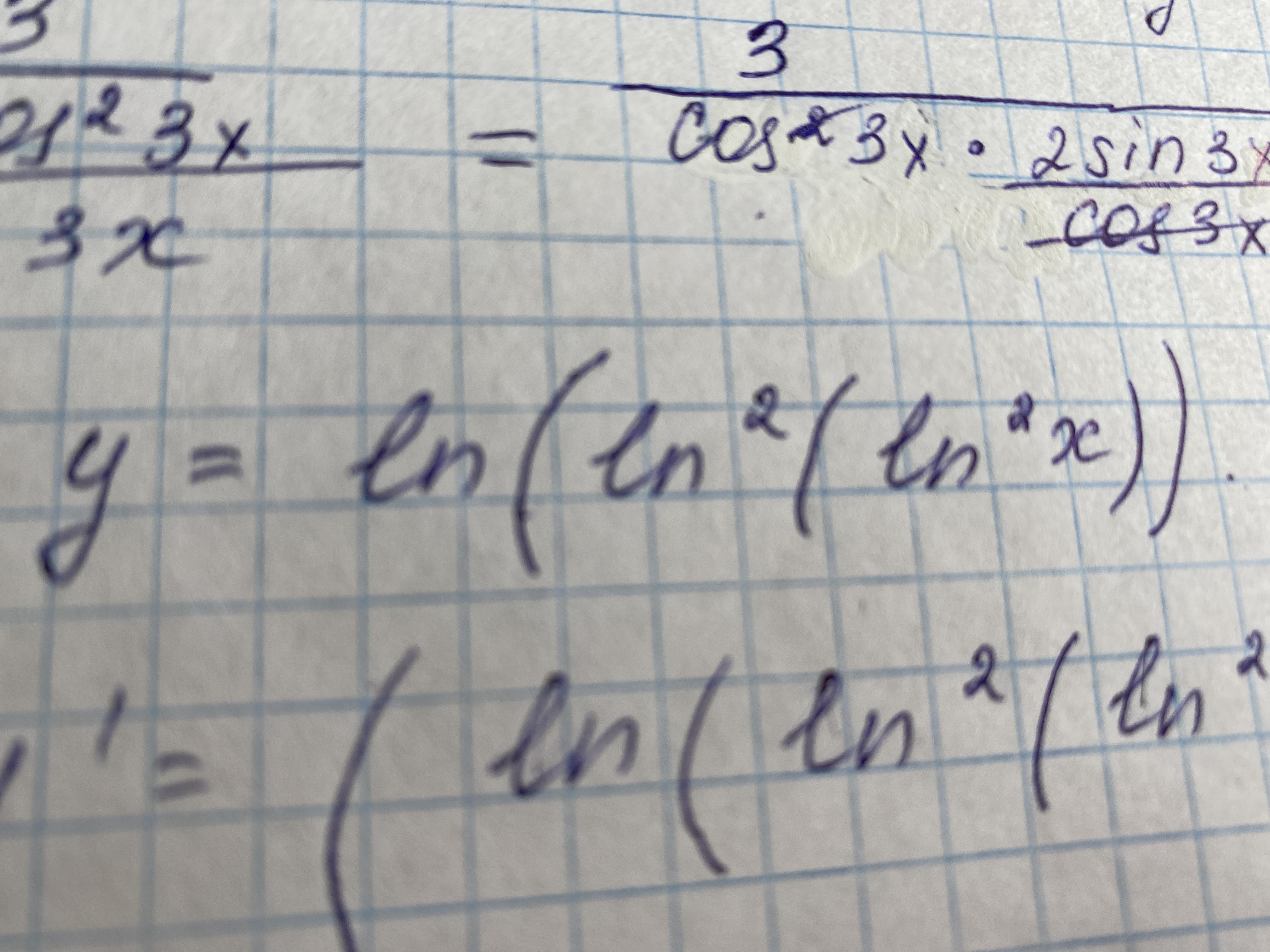 y'=(ln²(ln²x))'/ln²(ln²x)=2ln(ln²x)*(ln²x)'/(ln²(ln²x))*(ln²x)=